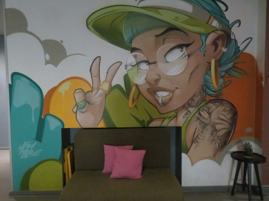 Perinteisen saksalaisuuden saamat kolhut jatkuivat vielä hotellille saavuttaessa: Hotelli oli jo ulkopuolelta värikäs ja sisätiloissa oli paljon modernia taidetta. Se siitä saksalaisesta hillitystä arvokkuudesta! Täytynee tehdä pieni päivitys käsitykseen saksalaisuudesta.