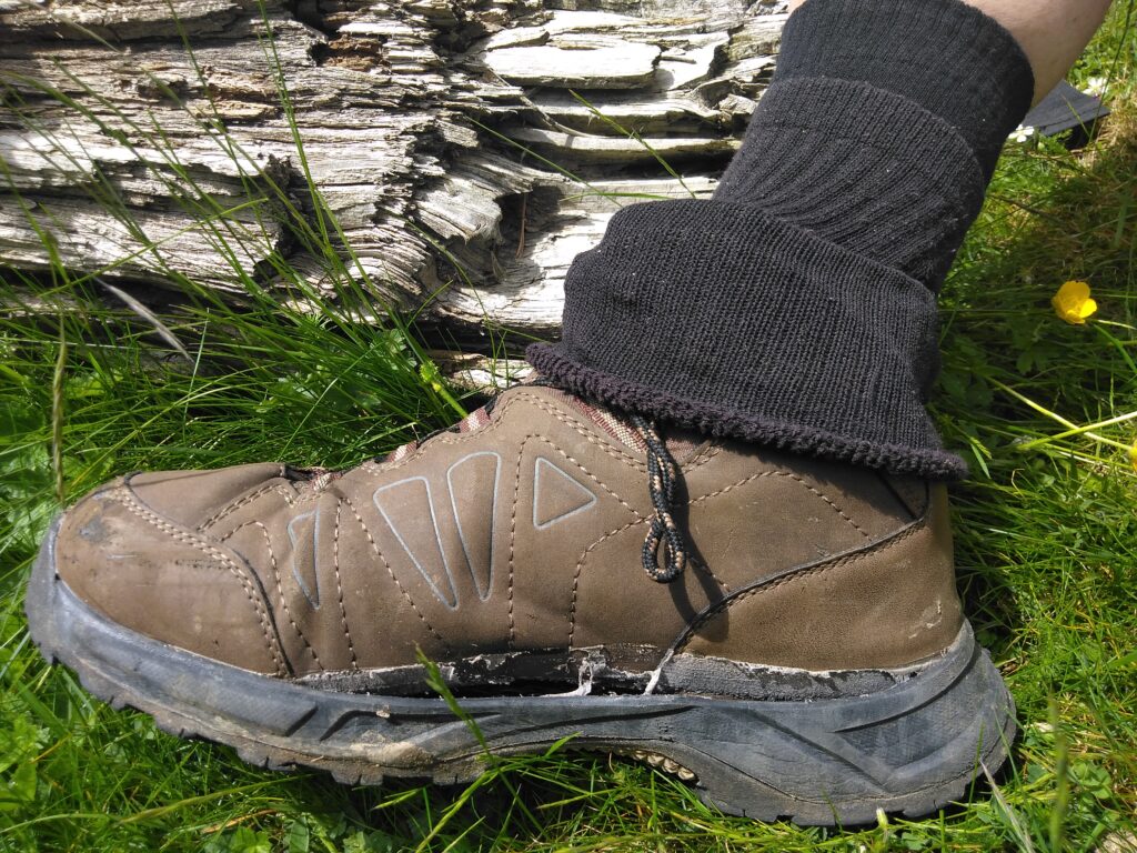 Kävimme tukemassa taas Cauterets’in elinkeinotoimintaa ostamalla kaksi paria vaelluskenkiä, kahdet kevyet ulkoiluhousut irrotettavilla lahkeilla ja yhdet ulkoilukäsineet. Vanhat vaelluskengät eivät kestäneet Vignemale’en ja crampons’ien rasituksia.