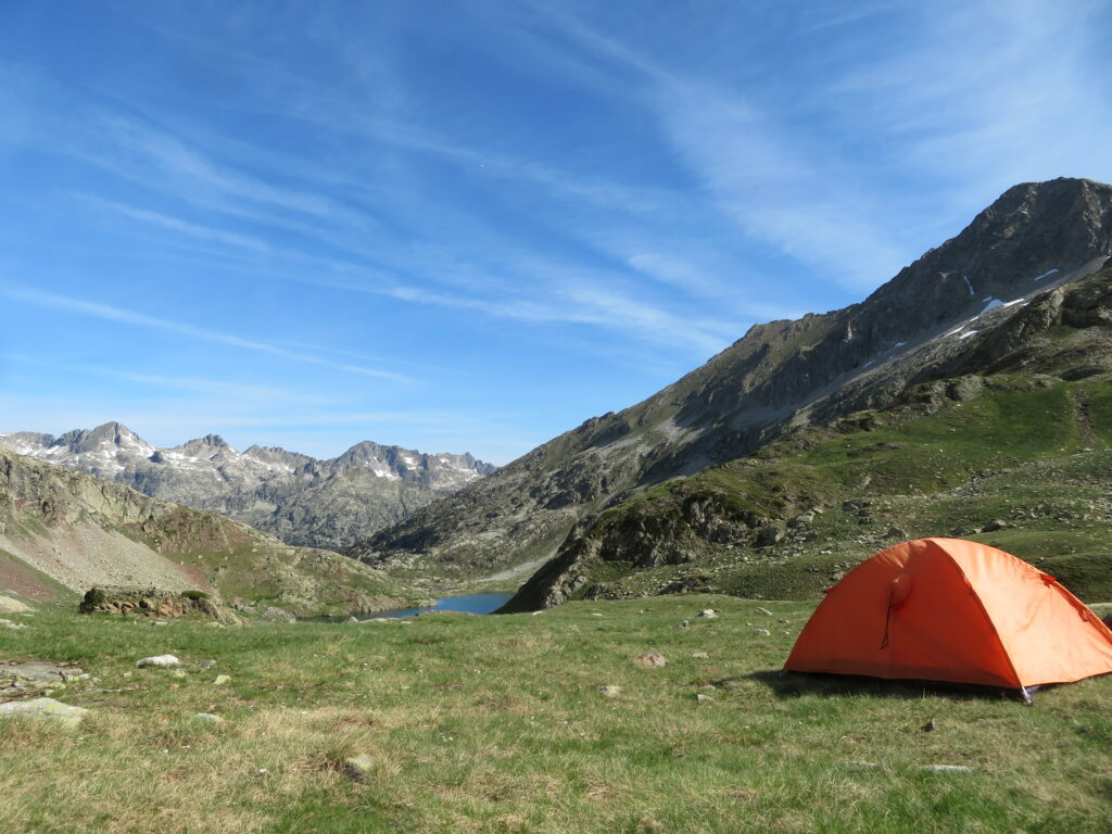 Col d’Arratille’eltä laskeuduttuamme jäimme bivouac’iin ensimmäiselle sopivalle telttapaikalle Lac d’Arratille’en eteläpuolelle (n. 2415 m). Yöllä lämpötila tippui nytkin jonkin verran pakkasen puolelle, koska aamulla lumen pinta oli jäässä.